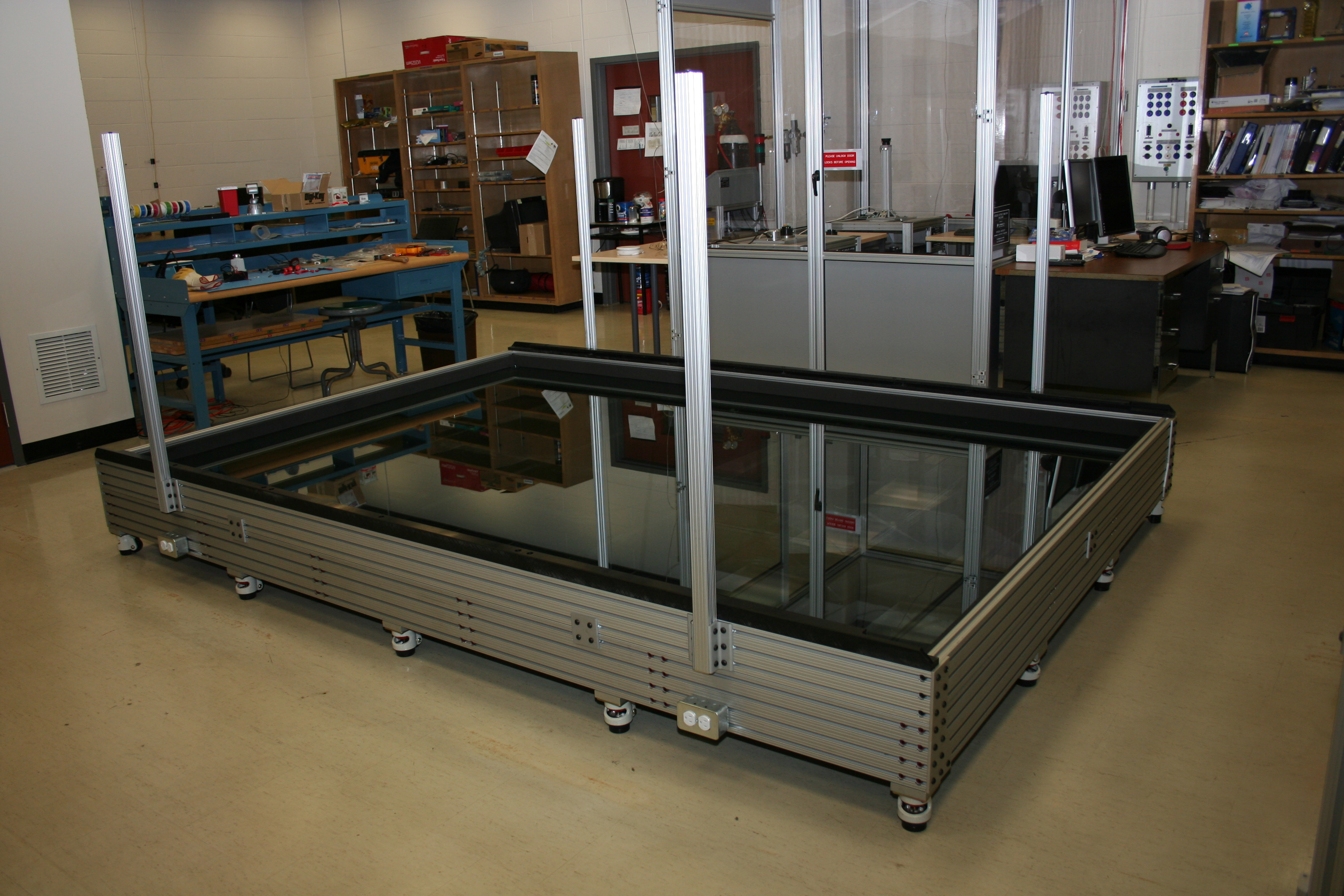- Air-bearing supported Unit on a glass floor; each unit undergoes 2 translation + 1 rotation